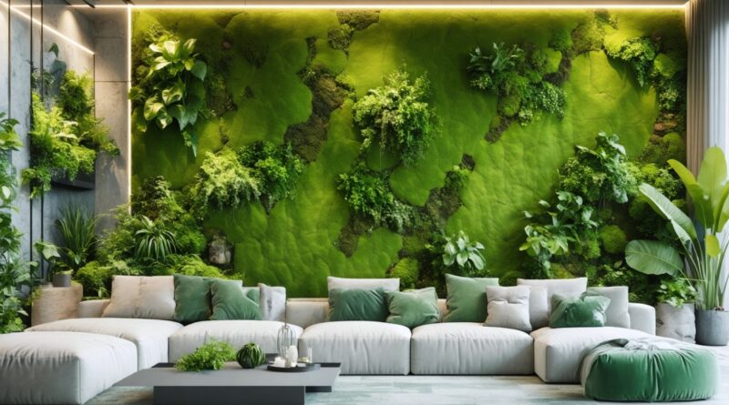 Zusammenwirken von Wand Moos und moderner Raumgestaltung